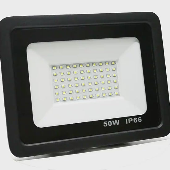 Faro Proiettore LED da esterno da 50 watt della marca Fusco Trade Center, con emissione luminosa di 5000 lumen e 60 LED ad alta efficienza. Dotato di protezione IP66 contro acqua e polvere waterproof, presenta un vetro temperato resistente agli urti e un telaio in alluminio pressofuso nero. La temperatura colore è di 6000K, ideale per illuminazione intensa e chiara. Prodotto da Sunrise Lighting Sea&Mew, lotto di dicembre 2024. Dimensioni compatte di 27x21x3 cm per un’installazione versatile e duratura.